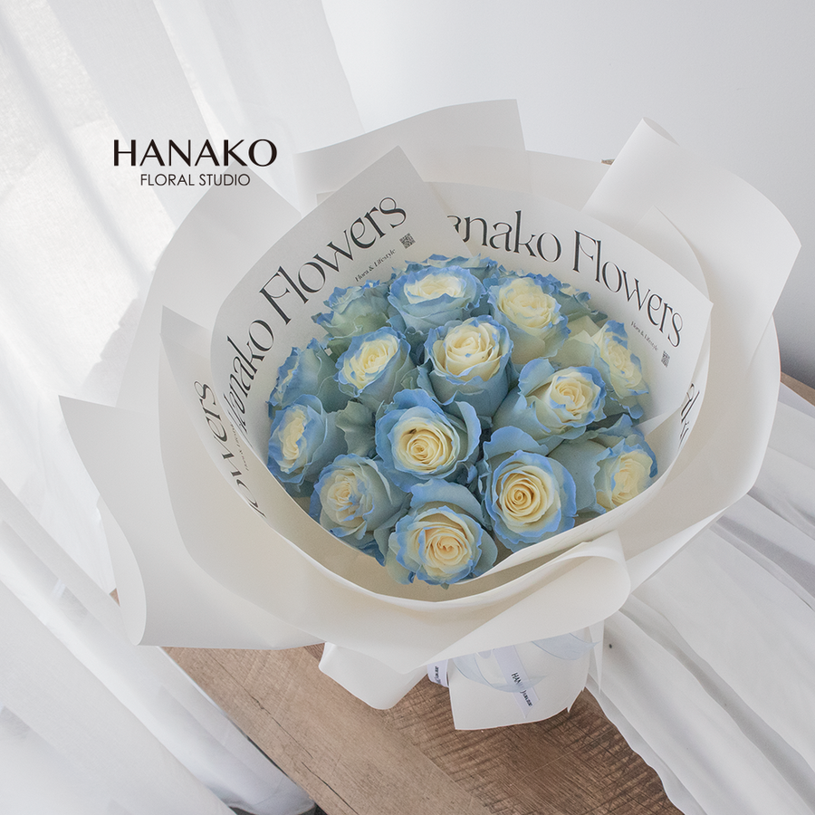 Classic Powder Blue Rose Round Bouquet(Pre-order, 3 Days in Advance)