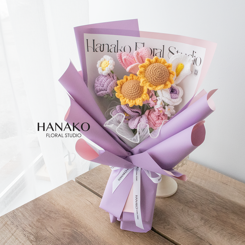 Handmade crochet flower bouquets designed to last forever. A meaningful alternative to fresh flowers for graduations and keepsake gifts.